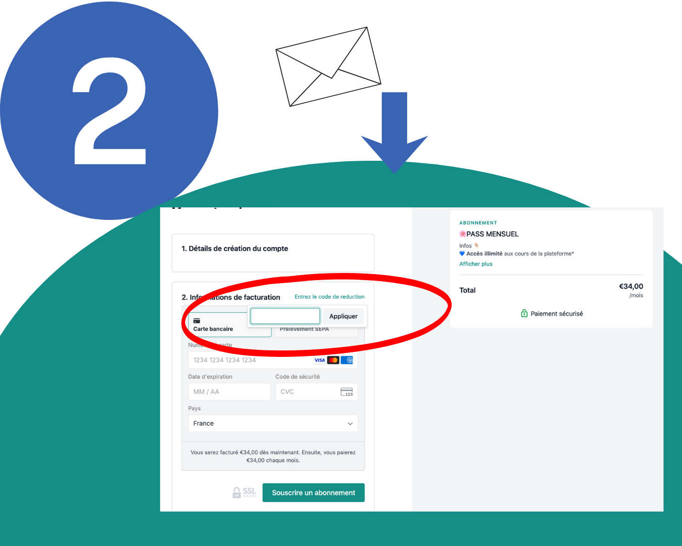 Copie le code promo reçu par mail et ajoute le au moment de t'abonner pour bénéficier des -50% !